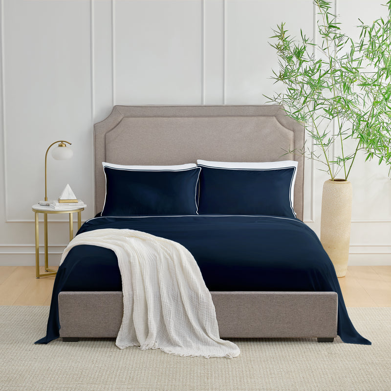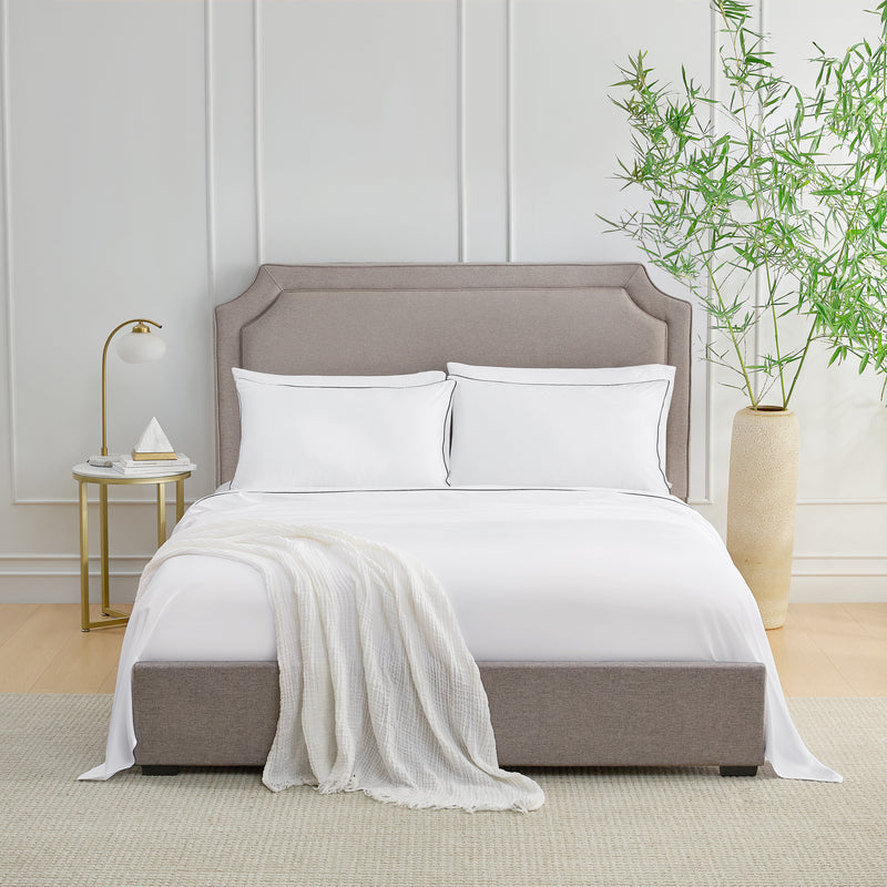 These sheets bring a clean, polished look to your bedroom with their soft sateen weave and subtle piping. Designed with care, they’re made for comfort and a good night’s sleep.